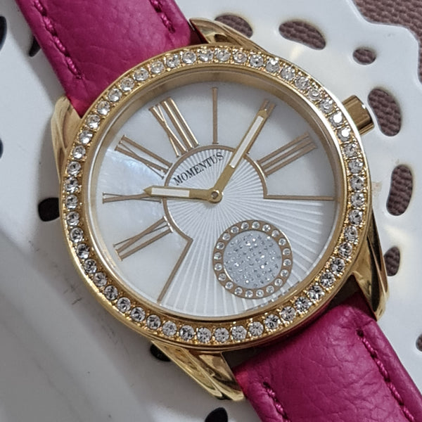 Momentus DW227G Damenuhr mit Pinkfarbenem Lederarmband