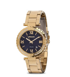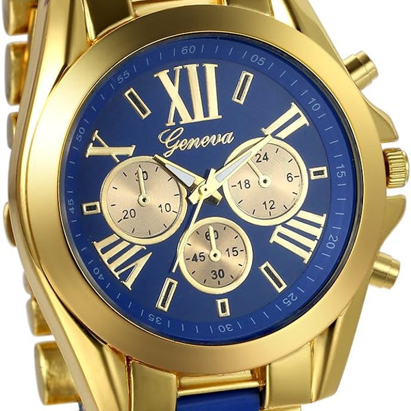 MOMENTUS Damenarmbanduhr, Goldfarben, Blaues Zifferblatt, 50m Wasserdicht
