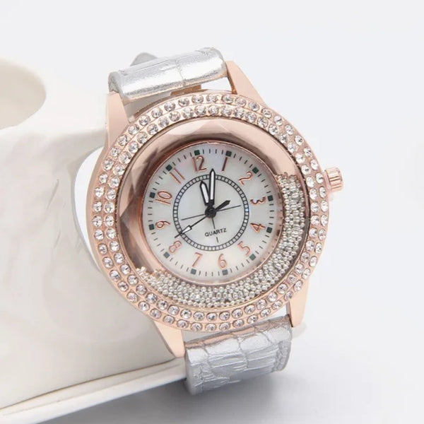 Damen Uhr mit Strass Skala – Koreanische Mode Uhr Quarzwerk – Elegantes Accessoire