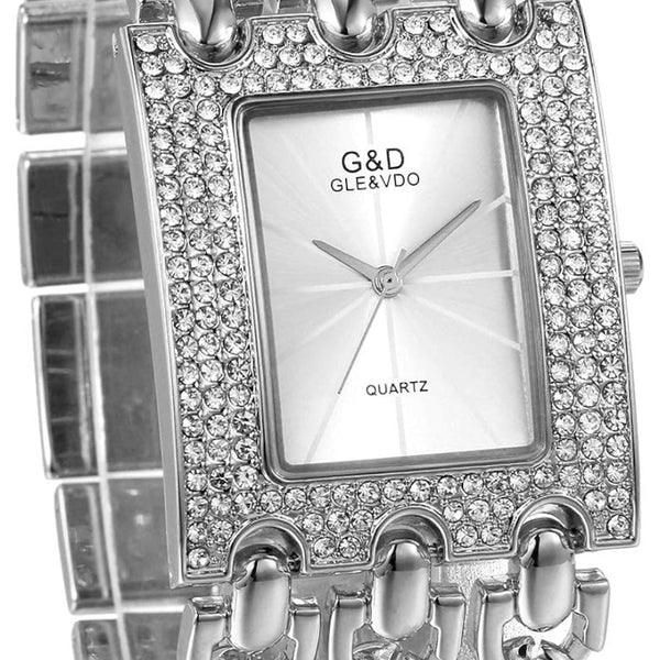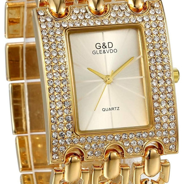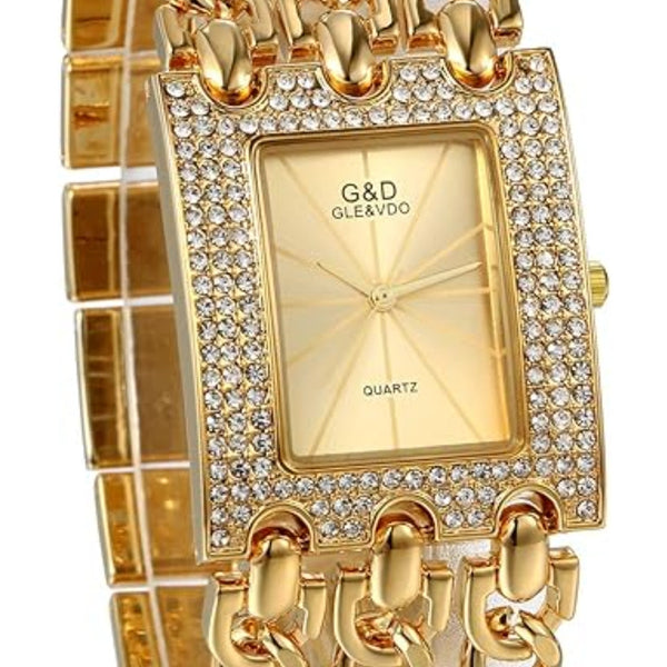 [Brand Name] Damen Uhr Rechteckig mit Strass – Elegante Quarz Armbanduhr in Gold & Silber