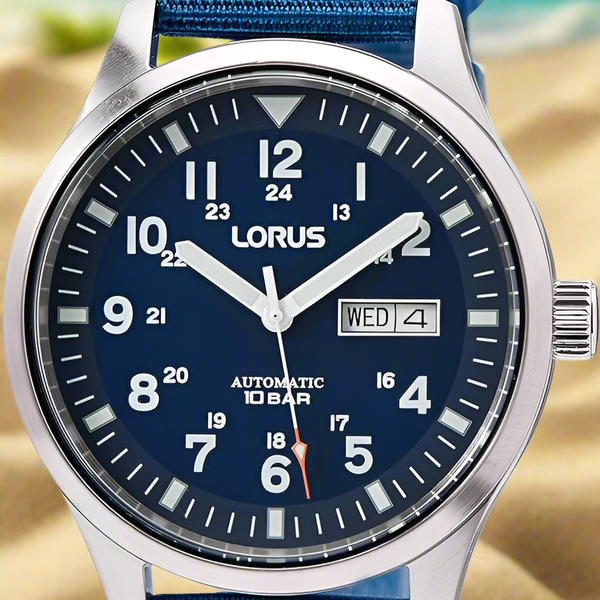 Lorus Herrenuhr Automatik Blau - Klassische Edelstahl Uhr für Herren