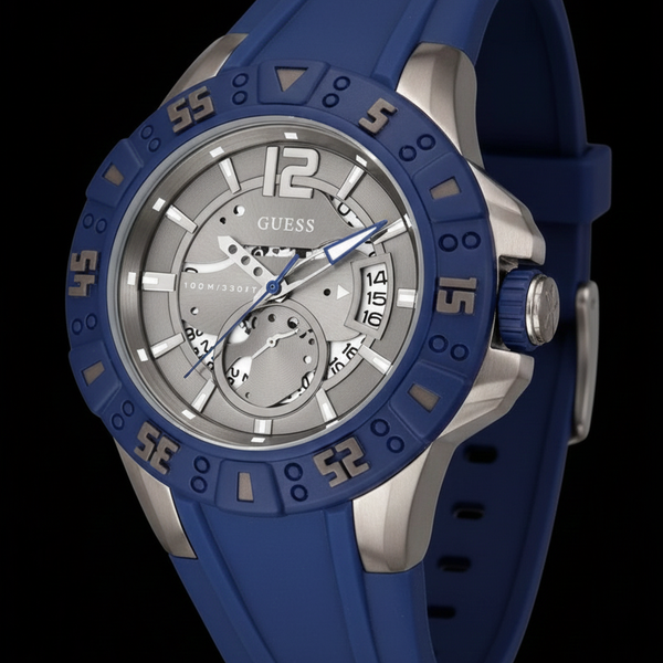 GUESS Herrenuhr W0034G6 – Blaues Silikonarmband & Anthrazit Zifferblatt