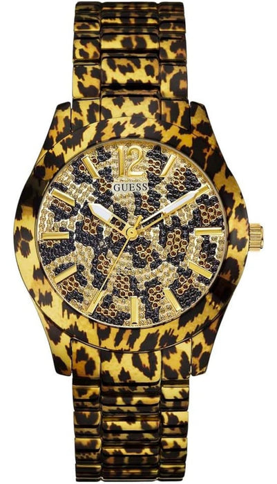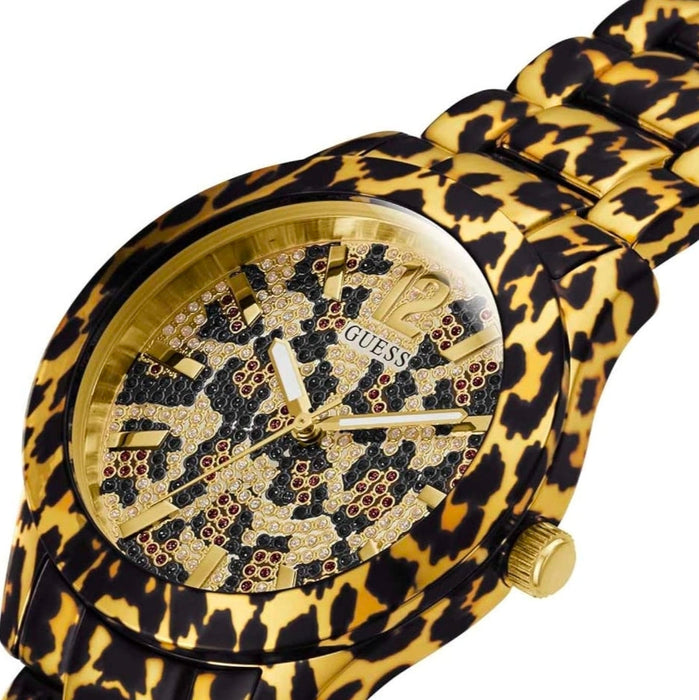 Die GUESS Fierce Damenarmbanduhr GW0450L1 ist ein echter Blickfang und vereint elegantes Design mit einem Hauch von Wildheit. Mit ihrem markanten Leopardenmuster und den hochwertigen Materialien ist sie der perfekte Begleiter für jeden Anlass.