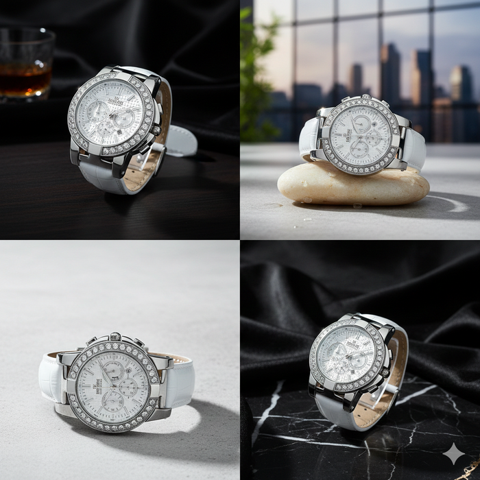 Wir präsentieren Ihnen eine brandneue und luxuriöse Hc HISLON Chronograph Damenuhr, die Eleganz und hochwertige Handwerkskunst perfekt vereint. Diese exquisite Armbanduhr ist ein absoluter Blickfang und ein Must-have für jede stilbewusste Frau.