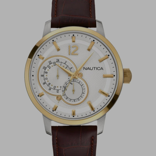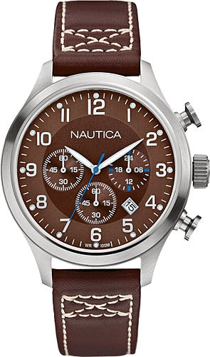 NAUTICA A14697G Herrenuhr Chronograph 44mm – Braun Lederarmband