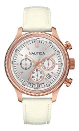 NAUTICA A21030G Chronograph 44mm Weiß Lederband Unisexuhr