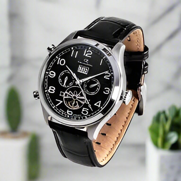 Diese exquisite Automatik-Herrenuhr vereint klassisches Design mit moderner Technik und ist ein stilvolles Accessoire für den anspruchsvollen Mann.