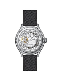 Das silberne Edelstahlgehäuse bildet einen perfekten Rahmen für das strahlend weiße Zifferblatt, das mit funkelnden Swarovski Steinen verziert ist. Die Automatik-Funktion sorgt für eine zuverlässige Zeitmessung, während die Datums- und 24-Stunden-Anzeige zusätzliche Informationen auf einen Blick liefert. Mit einer Wasserdichtigkeit von 5 bar ist diese Uhr der ideale Begleiter für den Alltag.