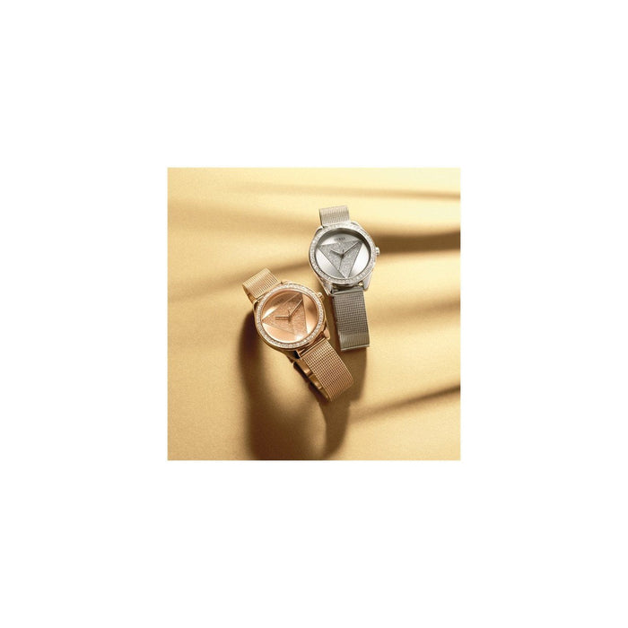 Die Guess GUW1142L1 Damen Uhr vereint stilvolles Design mit zuverlässiger Funktionalität. Das geflochtene Armband verleiht der Uhr einen einzigartigen Charakter, während das Edelstahlgehäuse für Langlebigkeit sorgt. Mit dem Quarzwerk ist eine präzise Zeitmessung gewährleistet.