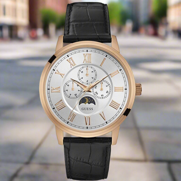 Guess W0870G2 Herrenuhr – 44mm Lederarmband, Quarzwerk & Garantie