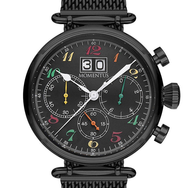Momentus S191E Chronograph Herrenuhr Schwarz Lederarmband