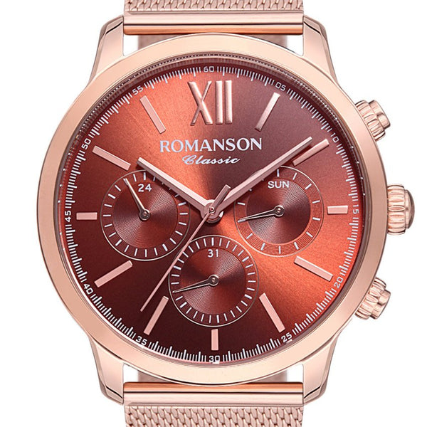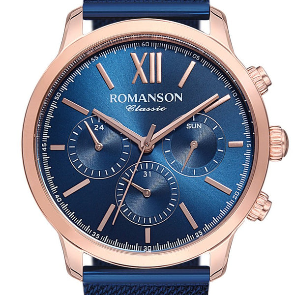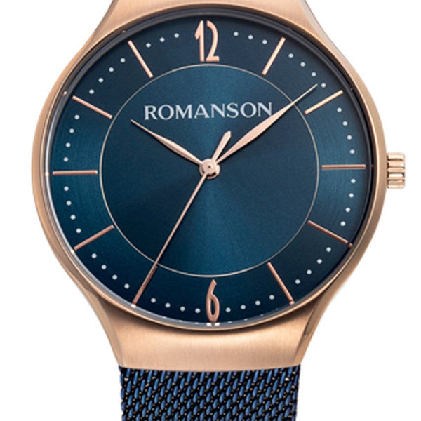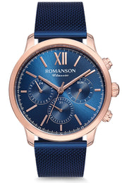 Romanson TM8A22FMURA46R Uhr – 44mm Roségold mit Blauem Mesharmband
