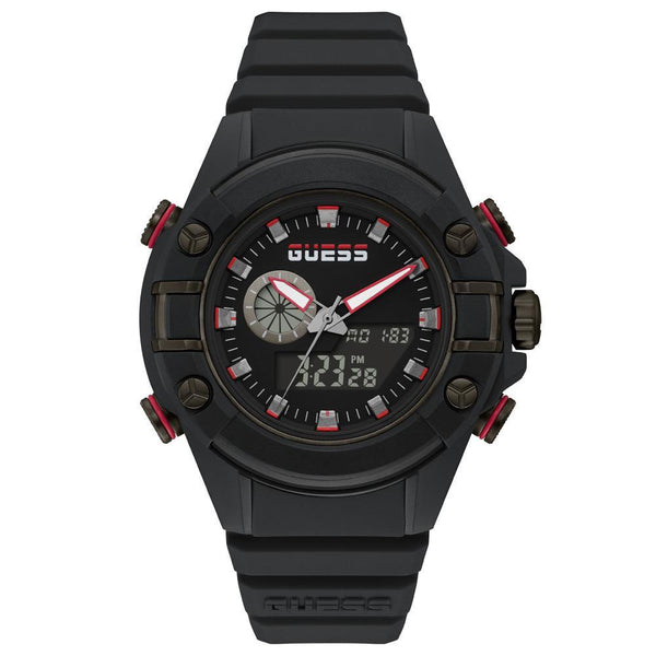 Guess Herrenuhr GUGW0211G3 – 43 mm – Schwarzes Silikonarmband