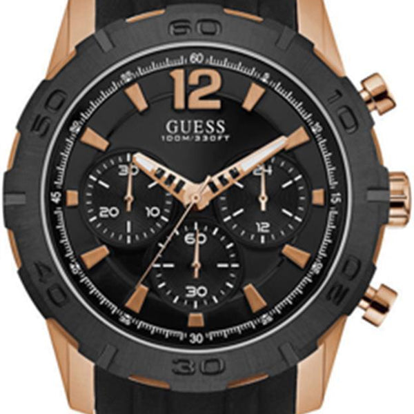 Guess Herrenuhr W0218G3 Rigor – Schwarzes Zifferblatt, Roségold Edelstahl