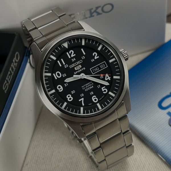 Seiko 5 Sports Herrenuhr SNZG13K1 – Automatik Uhr mit Schwarz Zifferblatt