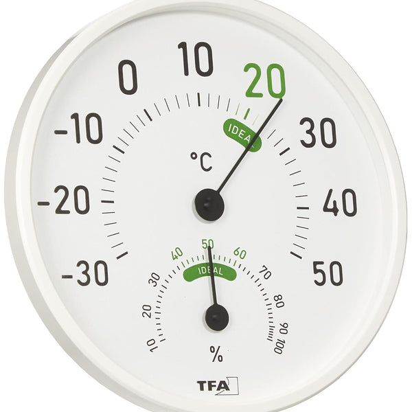 TFA Dostmann Analoges Raum- und Außenthermometer mit Komfortzonen – Weiß