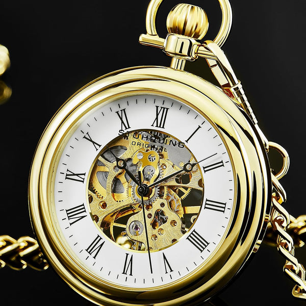 Stuhrling Original 6053.33333 Taschenuhr – Mechanische Herrenuhr mit Vergoldung