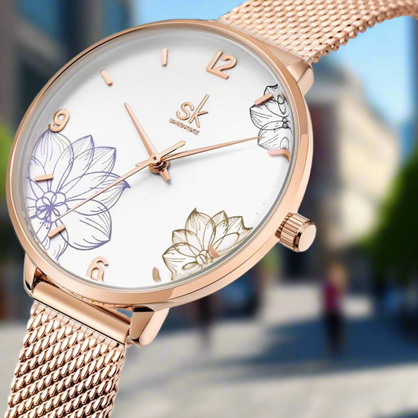 [Brand Name - Damen Uhr Blumenmuster Elegant – Quarzwerk & Garantie]