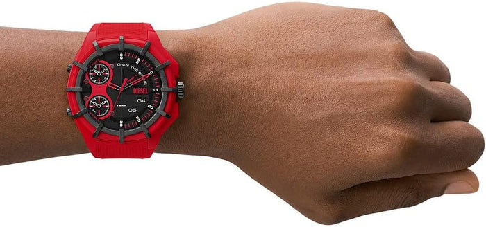 Die Diesel Herren Uhr Framed ist ein Statement für moderne Männermode. Mit ihrem markanten 51mm Gehäuse und dem mattschwarzen Zifferblatt zieht diese Uhr alle Blicke auf sich.