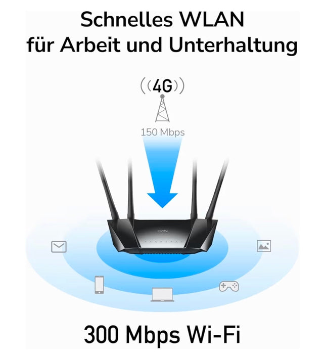 • 300 Mbps WLAN Geschwindigkeit: Genießen Sie kabelloses Internet mit hoher Geschwindigkeit für alle Ihre Geräte.