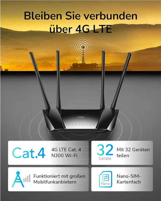 • 4G LTE Unterstützung: Nutzen Sie die neuesten 4G LTE Netzwerke für schnelle Download- und Upload-Geschwindigkeiten.