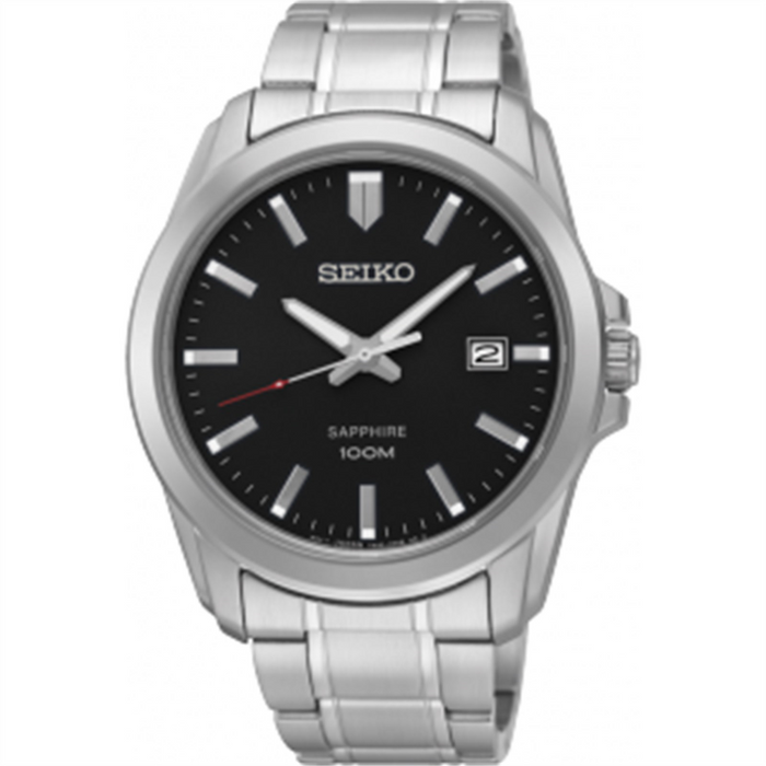 Diese Seiko Herrenuhr vereint klassisches Design mit modernster Technologie. Das Quarzwerk sorgt für eine präzise Zeitmessung, während das robuste Edelstahlgehäuse und das kratzfeste Mineralglas eine lange Lebensdauer garantieren. Das Armband aus Edelstahl unterstreicht den eleganten Look, während die Wasserdichtigkeit bis 3 Bar den praktischen Nutzen erhöht.