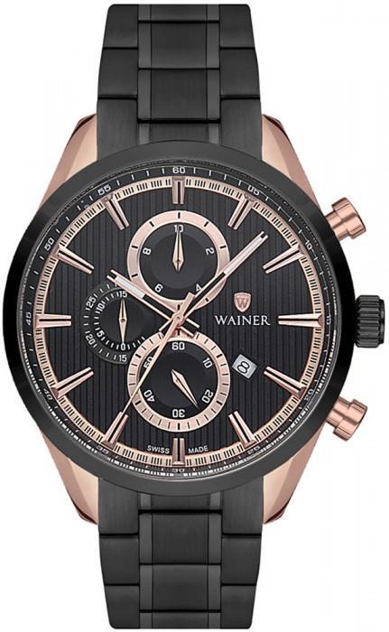 Entdecken Sie die Wainer WA.19388-A Herrenuhr, ein Meisterwerk der Schweizer Uhrmachkunst. Diese neue Uhr wird mit Originalverpackung und Garantie-Zertifikat geliefert und verkörpert Stil, Präzision und Langlebigkeit.