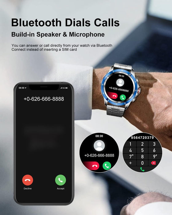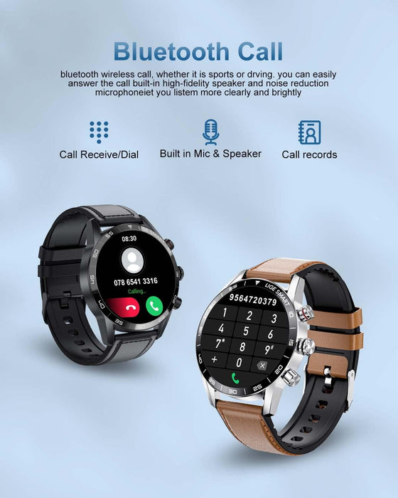 📞【Smartwatch mit Bluetooth-Anrufen】Die Herren Smartwatch verfügt über ein Mikrofon für Zwei-Wege-Telefonate. Nach der Verbindung können Sie die Uhr zum Annehmen und Tätigen von Anrufen nutzen und ein Adressbuch hinzufügen, was die Bedienung vereinfacht. Der Lautsprecher sorgt für eine klare und verständliche Gesprächsqualität.