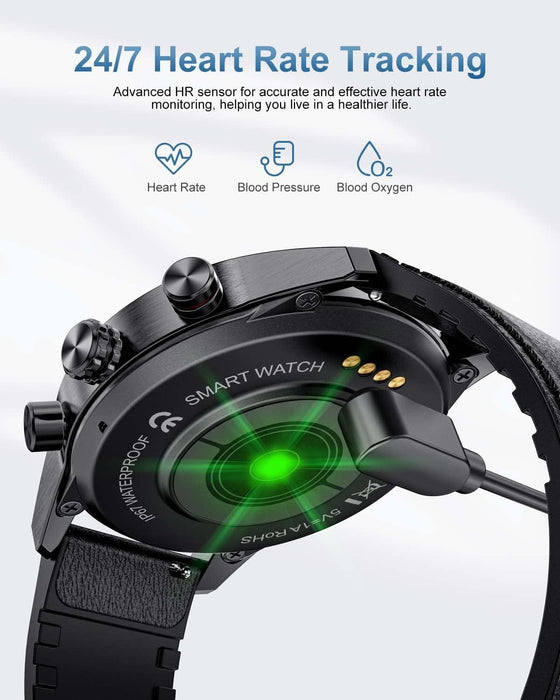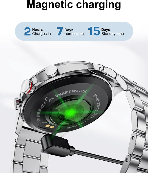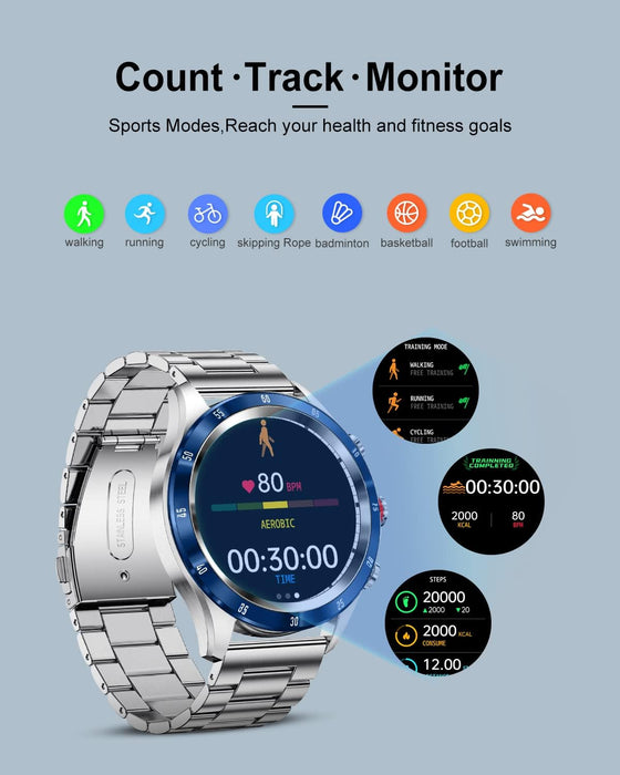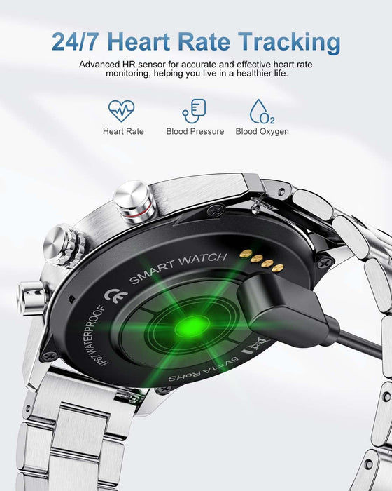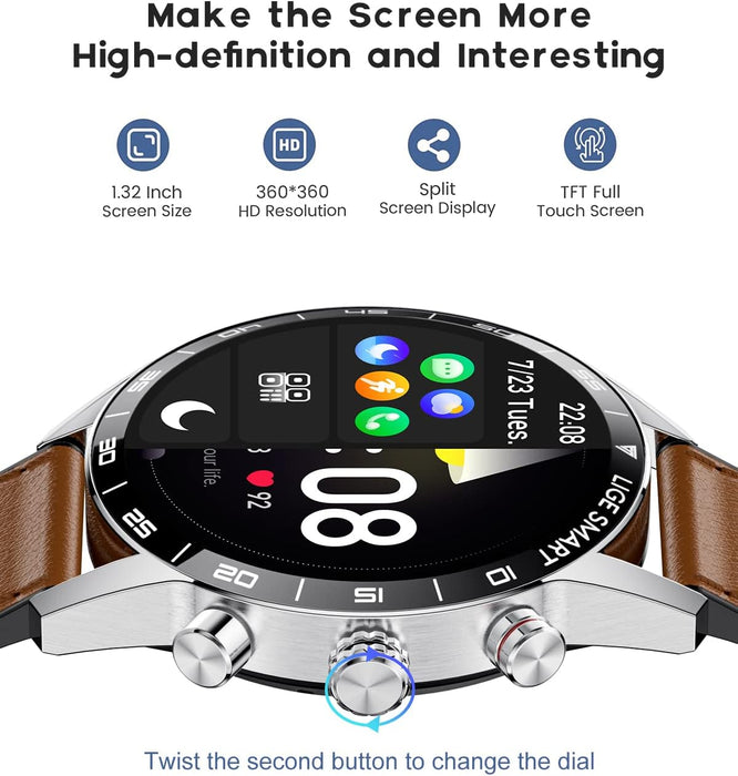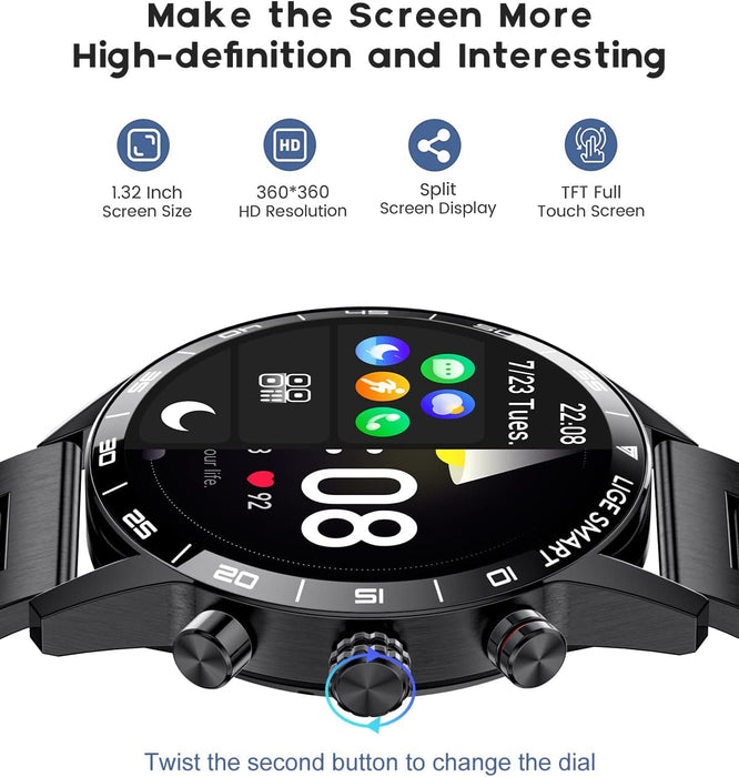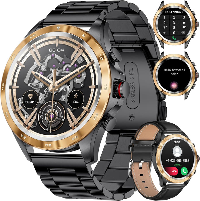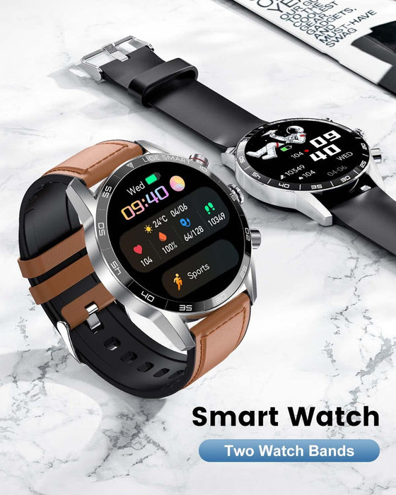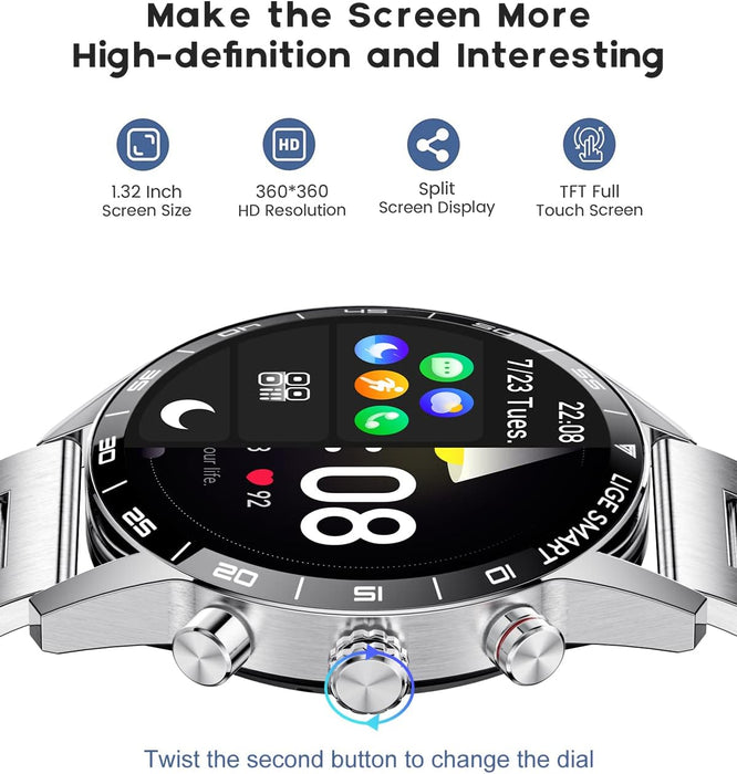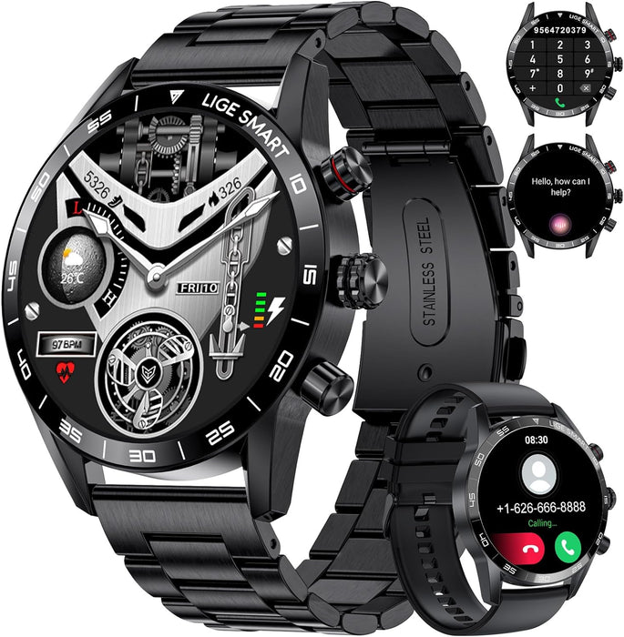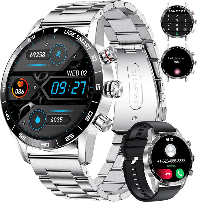 🎁【Zifferblätter und 2 Armbandvarianten】Die Herren Smartuhr bietet über 200 Zifferblätter zur Auswahl in der zugehörigen App und ermöglicht die Auswahl eines passenden Designs. Zusätzlich ist die Fitnessuhr mit zwei austauschbaren Armbändern (Metallarmband und Silikonarmband) ausgestattet, die einen flexiblen Wechsel zwischen Arbeit, Sport und Freizeit ermöglichen.